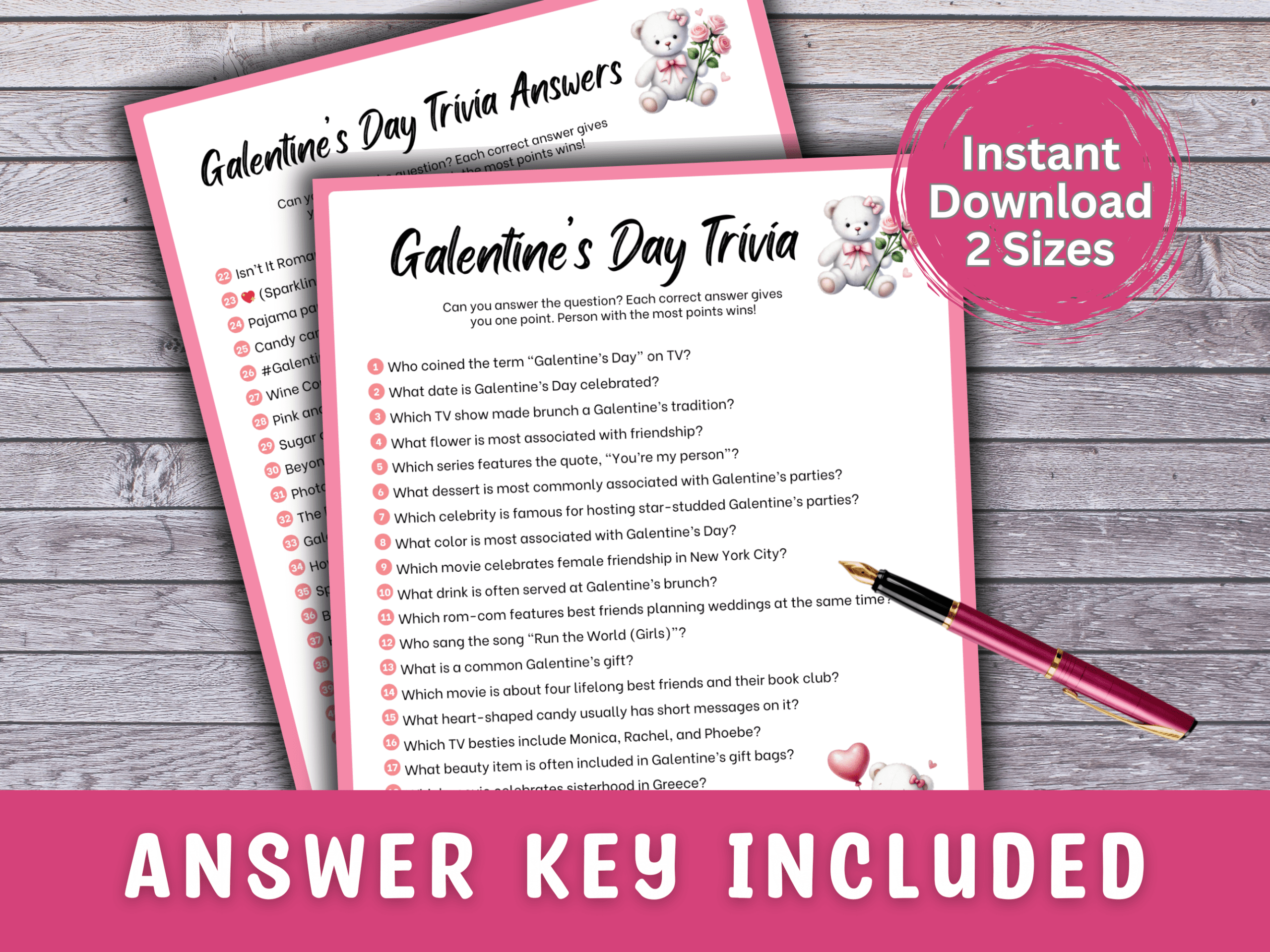Galentine’s Day Trivia Printable – Fun Friendship Party Game