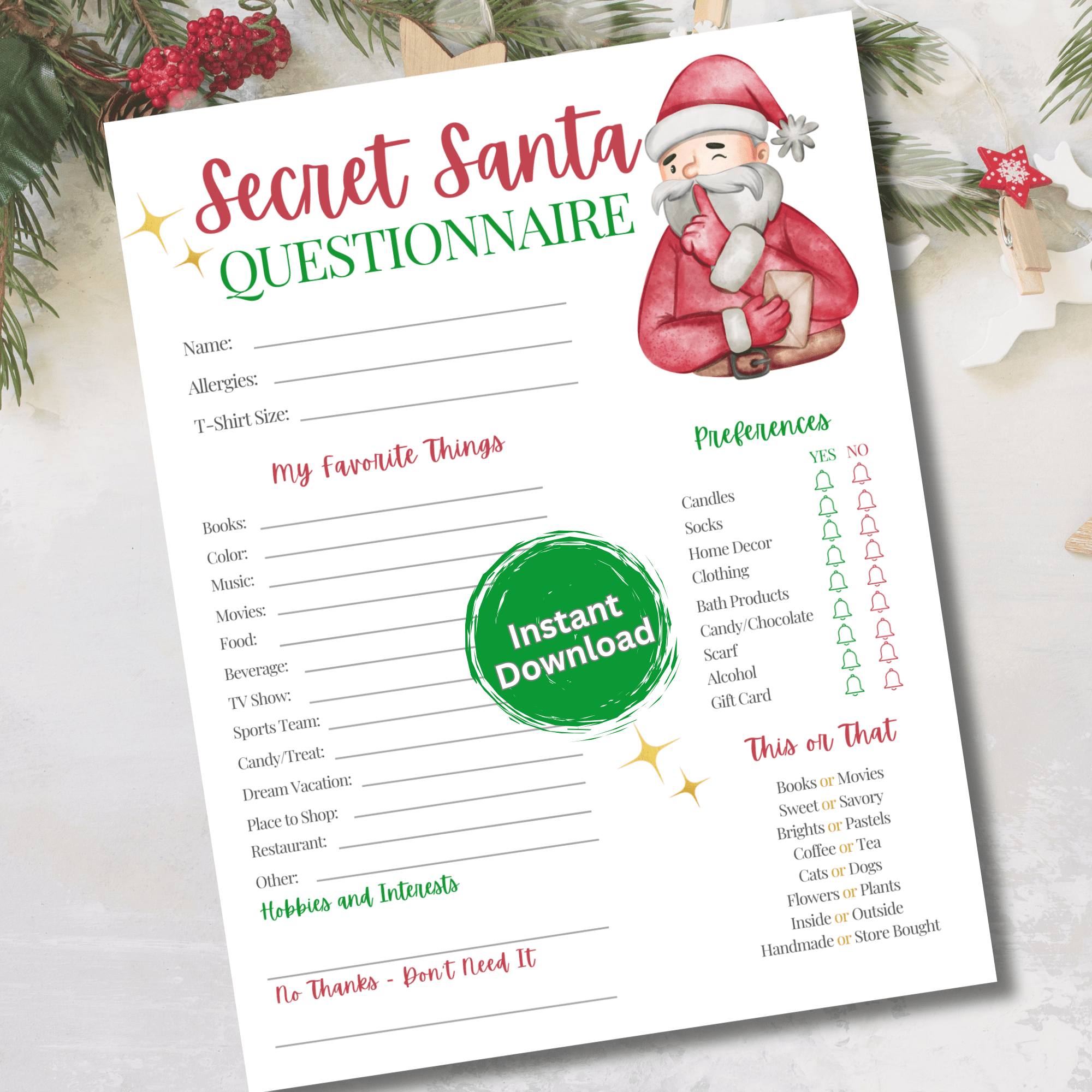 Secret Santa Questionnaire Printable