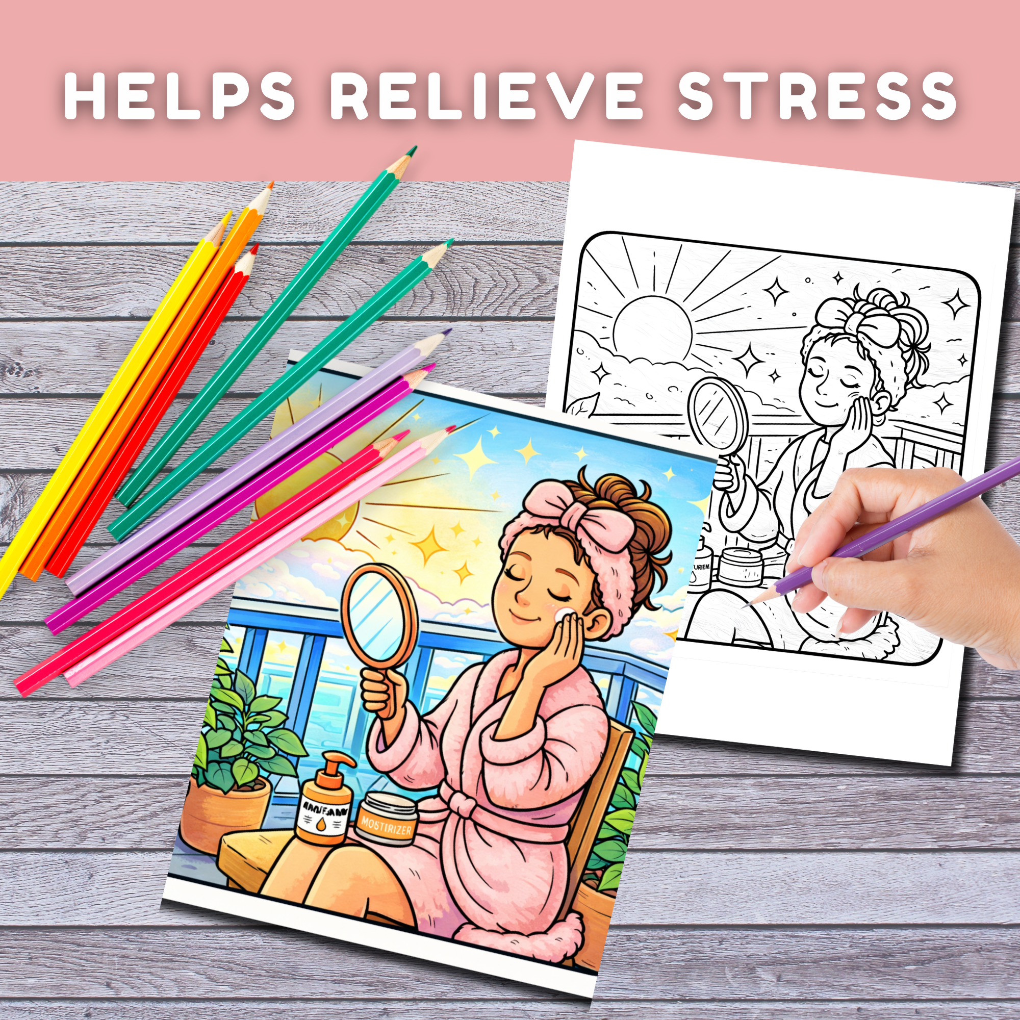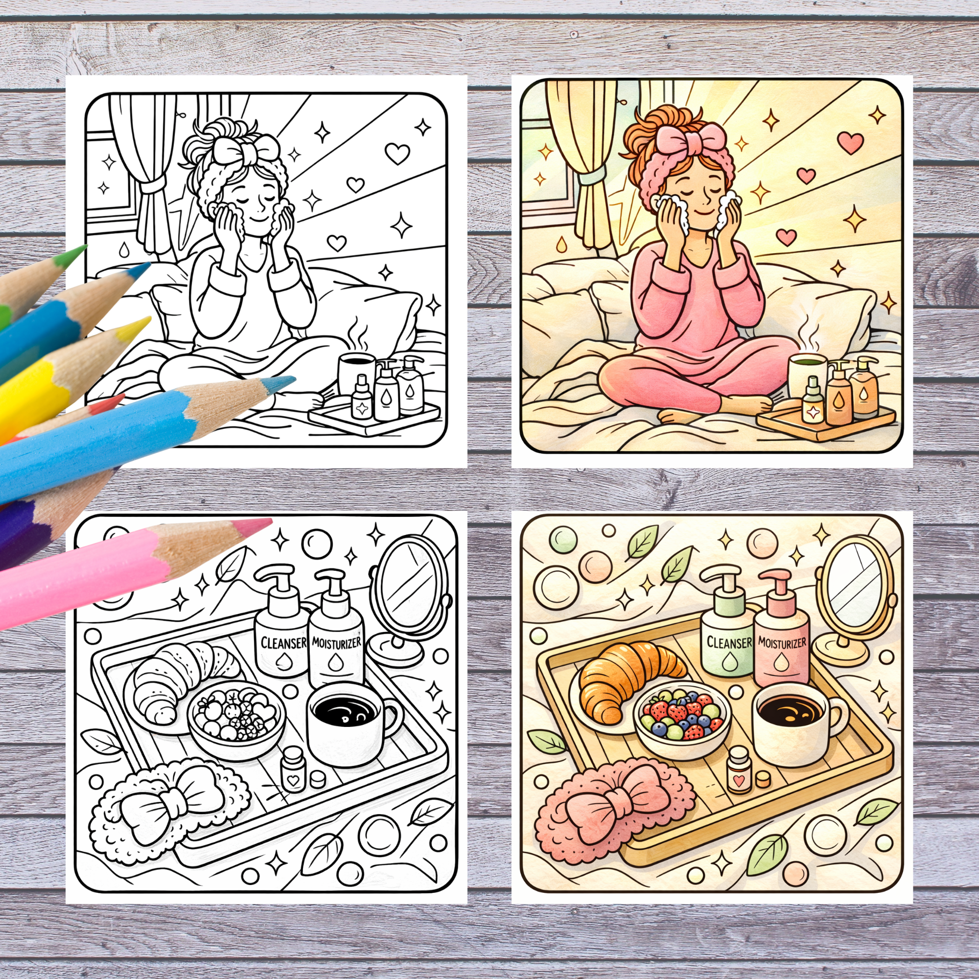 Soft Life Morning Routine Printable – Cozy Self Care Skincare Coloring Pages for Relaxation